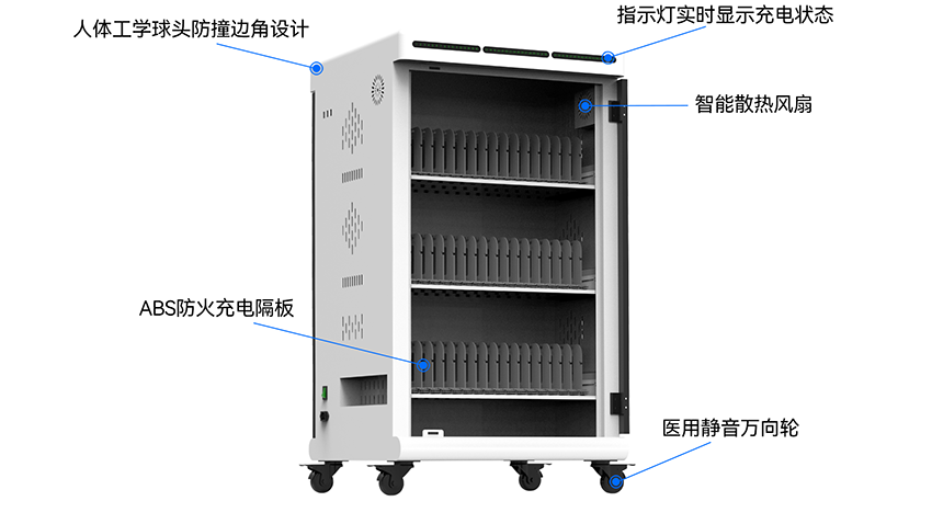 ABS防火隔板的設(shè)計(jì),進(jìn)一步提高了平板充電柜的散熱能力增強(qiáng)了安全性,并且隔板采用塑膠材質(zhì),可以防止劃傷電子設(shè)備。