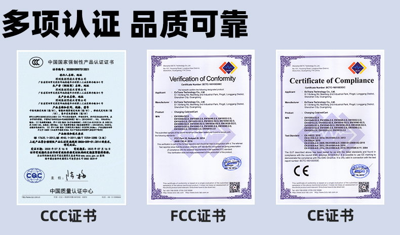 整機通過國家CCC強制認證,CE,FCC,ROHS,REACH,CA65 |